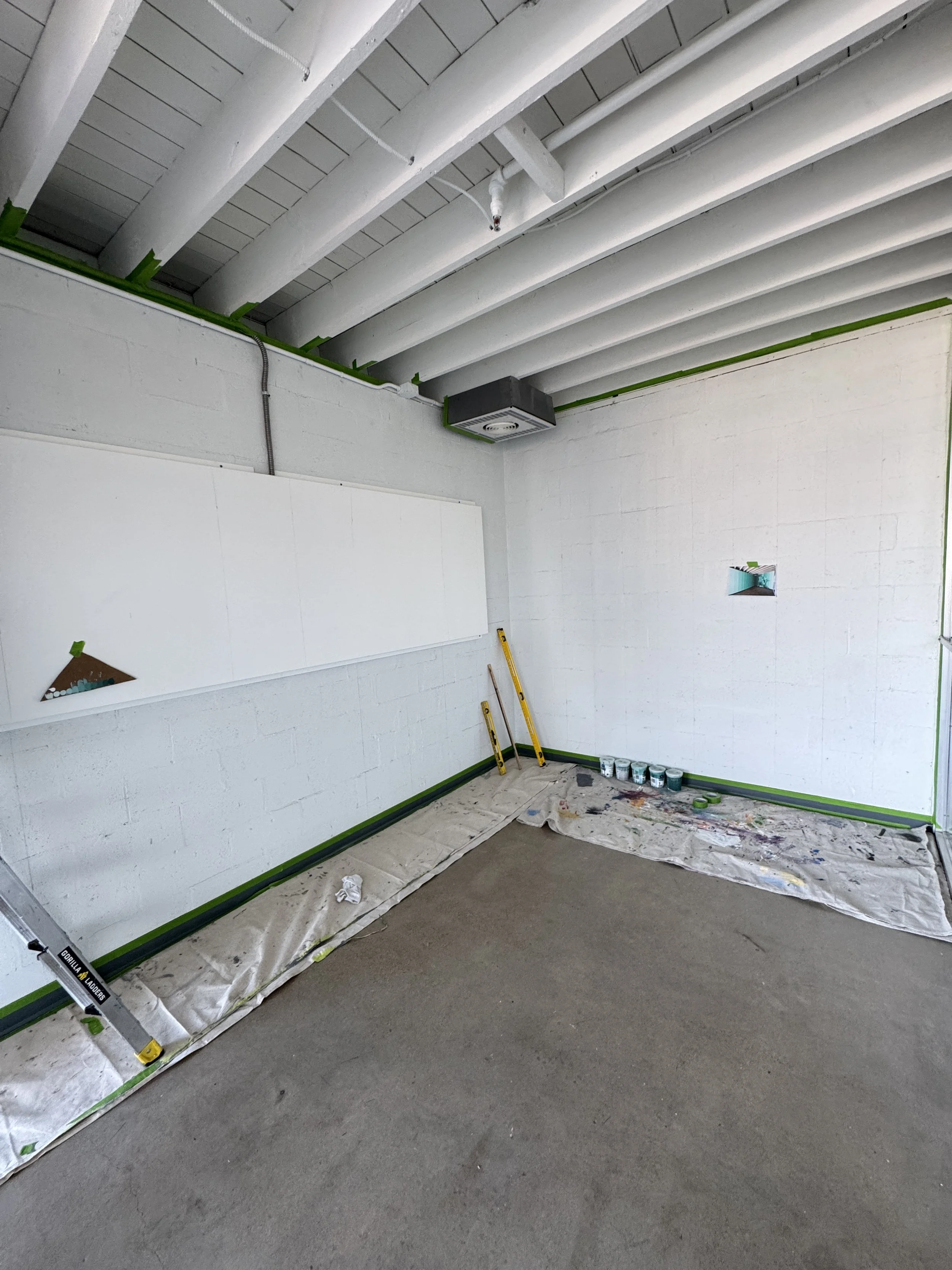 I got a fun opportunity to paint two fully monochromatic murals for co working space Flex Etc in Nashville, TN. I worked with their dark teal base color and created 10 tones of teals to cover a large dining space wall as well as two walls in a vestibule at the entrance.