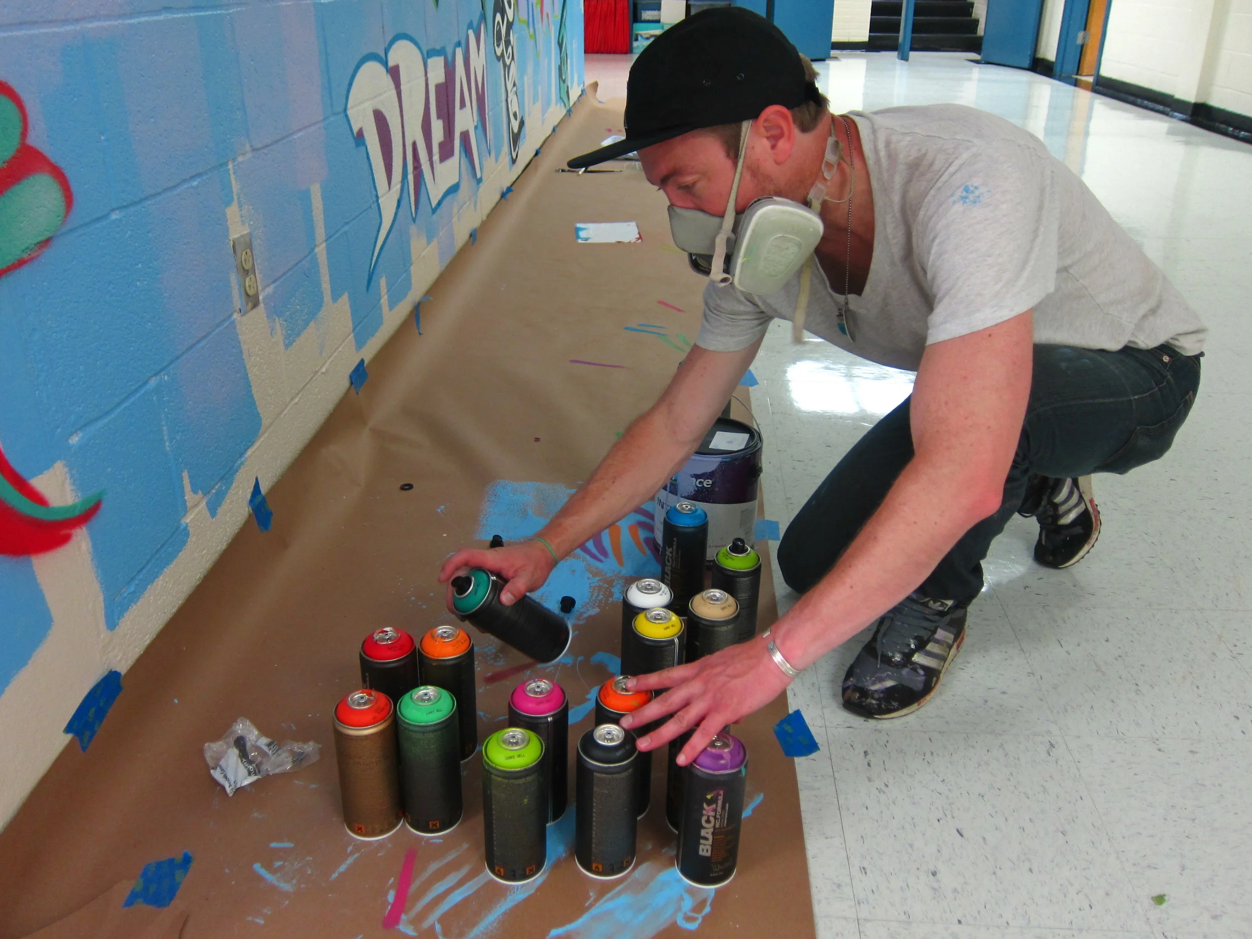 Metro Nashville Public Schools commissioned me to bring awareness to a new program called S.T.E.M. (Science Technology English and Math) I pulled in longtime friend and incredible street artist Audie Adams to make it all happen. We collaborated with each school and with students that showed an interest in the arts as well as being in need of after school activities. We completed 25 murals in 5 different schools and worked with over 50 kids that learned how to use brush paints, spray paint and some basic skills in general.